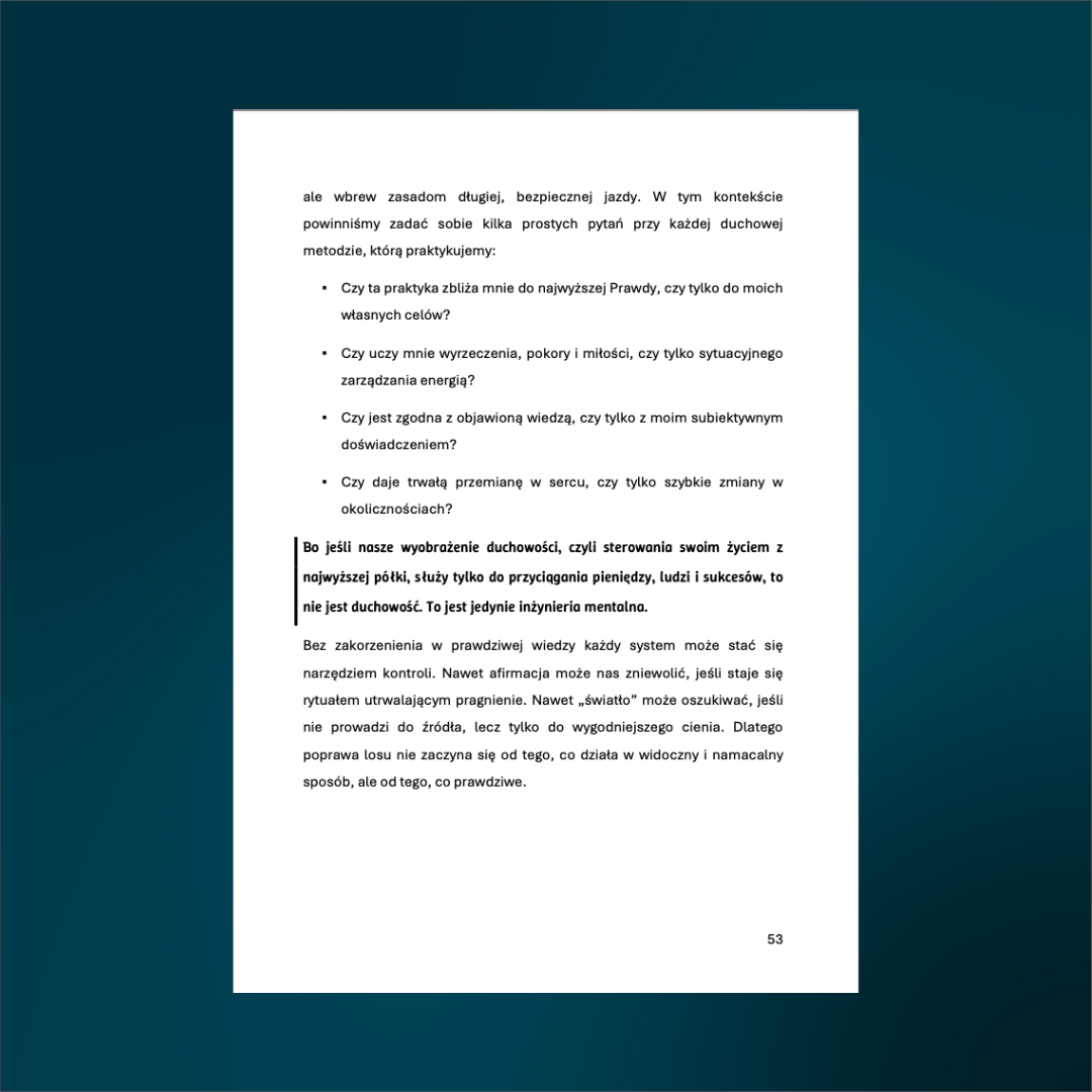 Mentalizm obiecał nam duchowość bez wysiłku, istnienie bez sensu i moc bez celu. Zastąpił Boga „energią”, a człowieka – „świadomością pola”. Przekonał, że wystarczy pomyśleć, poczuć, zwizualizować, a wszechświat natychmiast się podporządkuje. Nie zauważyliśmy, że to już nie rozwój, lecz doskonale opakowana forma kontroli, Nowa wersja tego samego ego, które dawniej chciało zapanować nad światem za pomocą materii, a dziś próbuje zrobić to samo przy użyciu „energii”, nad którą rzekomo całkowicie panujemy.